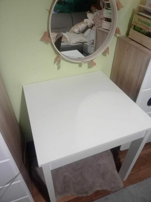 Sprzedam drewniany stolik/biurko. Używane lecz w stanie bardzo dobrym. Wymiary: Szerokość blatu: 70x70cm Wysokość: ...