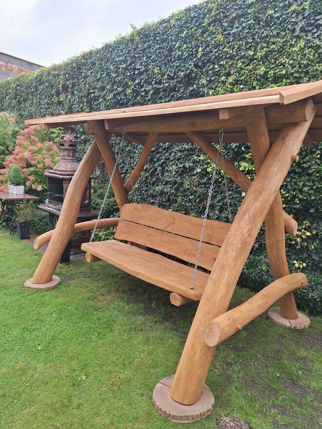 Witam mam do zaoferowania huśtawkę ogrodową z bala sosnowego cena 1900zł. Możliwość zrobienia huśtawki z dachem koszt 2300zł. Zapewniamy transport na terenie całego kraju.* Wymiary huśtawki: