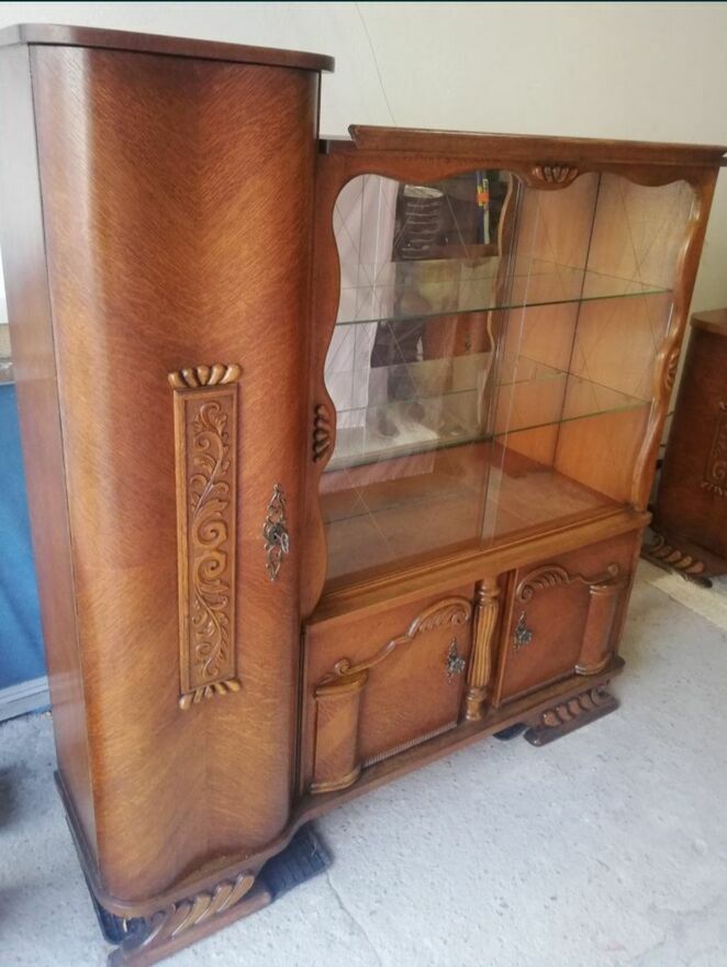 Sprzedam stare zabytkowe dębowe meble. Stan bardzo dobry. Staranne wykończenia rzeźbione. Meble są ciężkie, porządne. Wymiary komoda dł. 2 metry, wys. 90cm, szer. 52cm. Witryna dł. 140cm, szer. 40cm, wys. 152cm.Sprawdź zainteresowanie tym ogłoszeniem