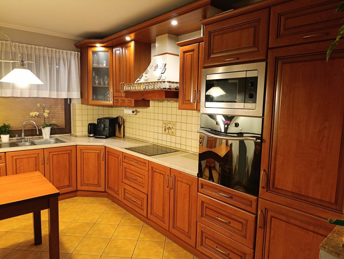 Sprzedam meble kuchenne w dobrym stanie , robione na wymiar, wraz ze sprzętem AGD( poza zmywarka) sprzęt działający . Meble posiadają bardzo mało uszkodzeń. Wymiary 4,0 x3,70 Do mebli jest jeszcze drewniany stół i 4 drewniane krzesła .Sprawdź zainteresowanie tym ogłoszeniem