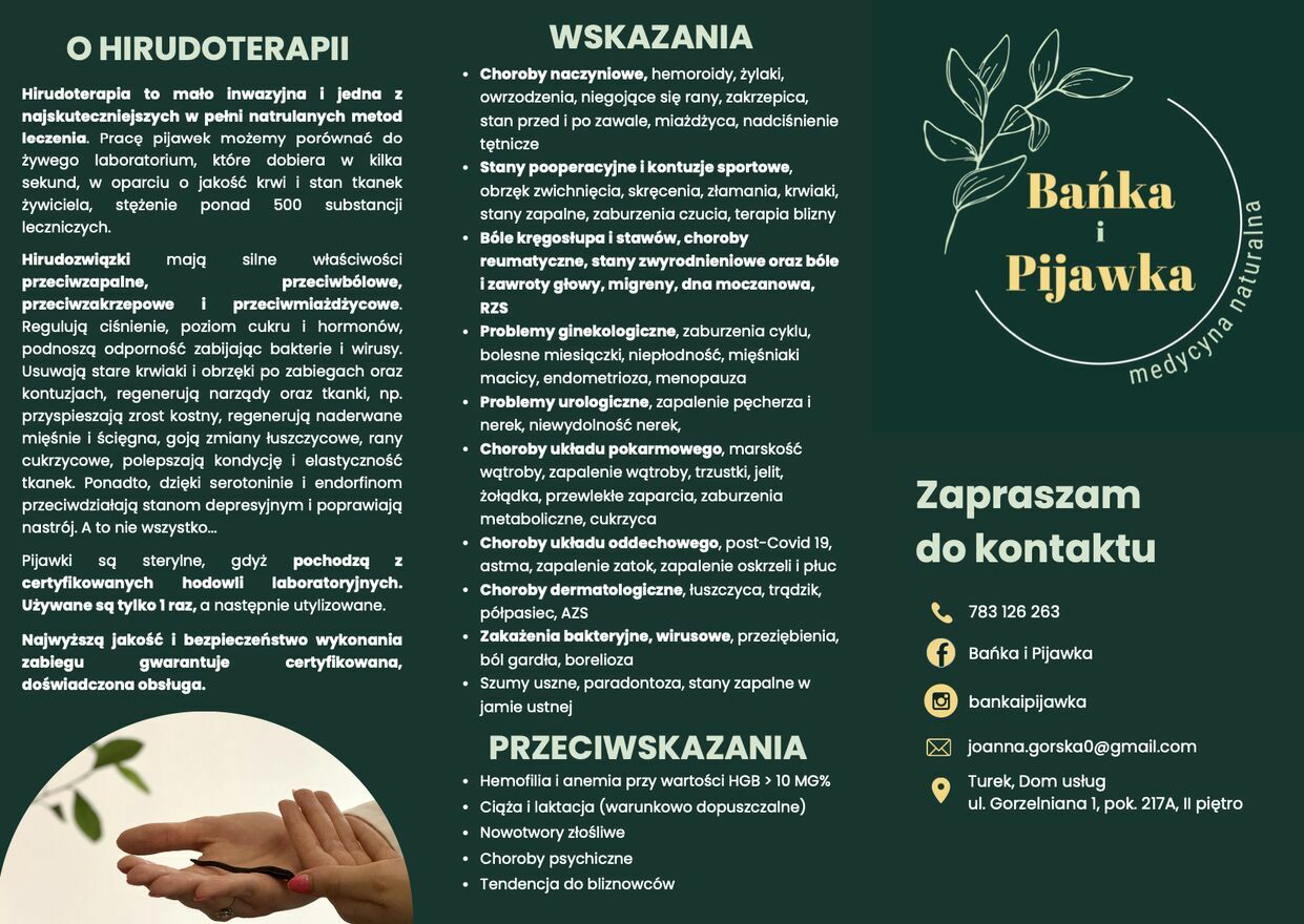 Bańka i Pijawka – Gabinet Naturalnych Terapii | TurekSpecjalizujemy się w naturalnych metodach wspierania zdrowia: hirudoterapii (terapii pijawkami lekarskimi), bańkach ogniowych oraz konchowaniu uszu.