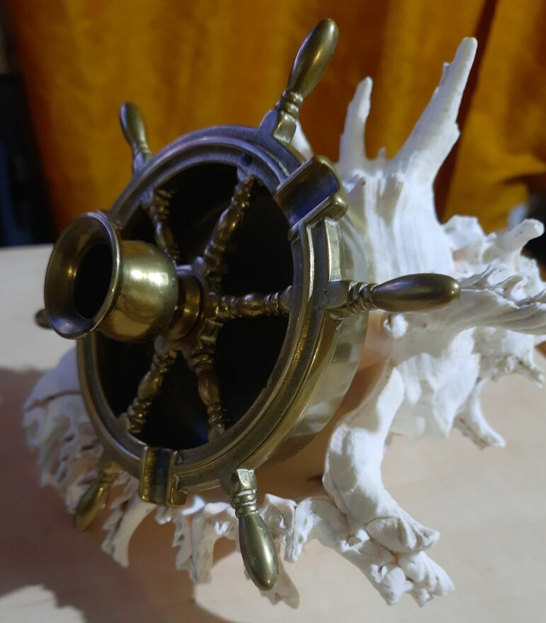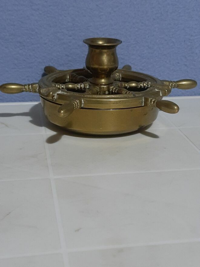 Stara popielniczka mosiądz lata60 XXwiekuKształt koła sterowego w środku miejsce na świeczkę